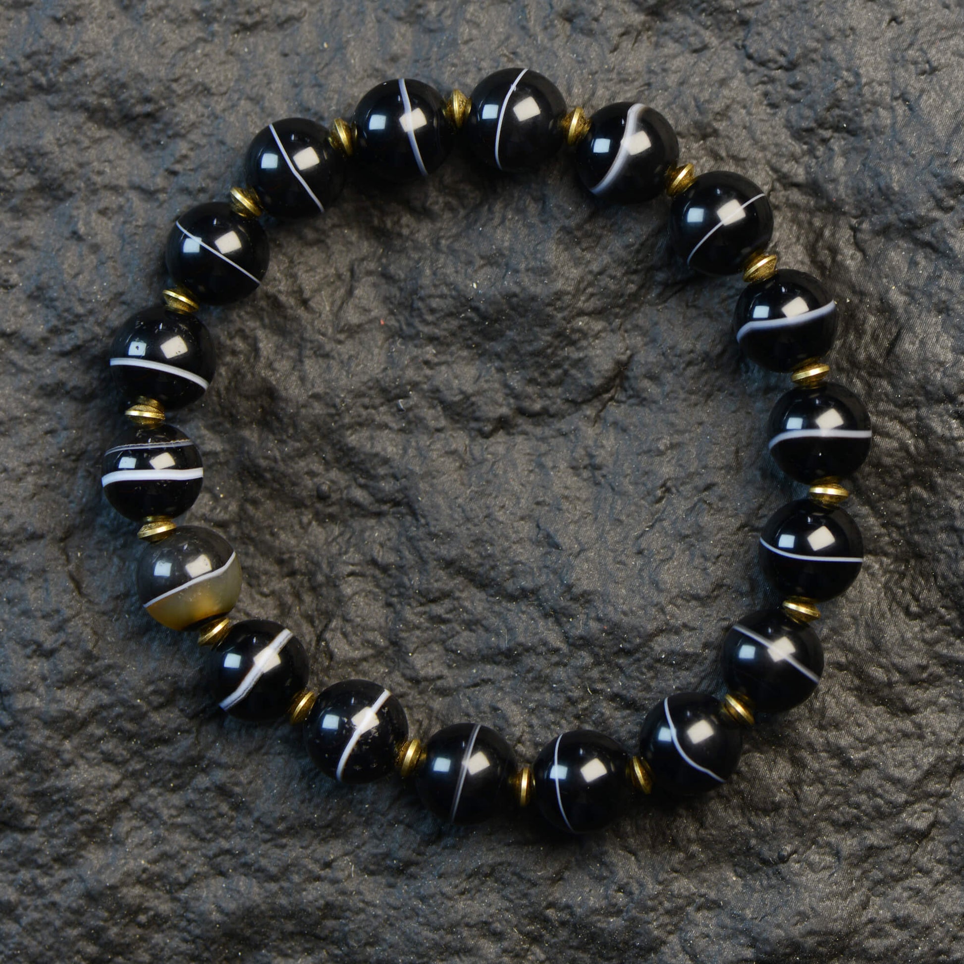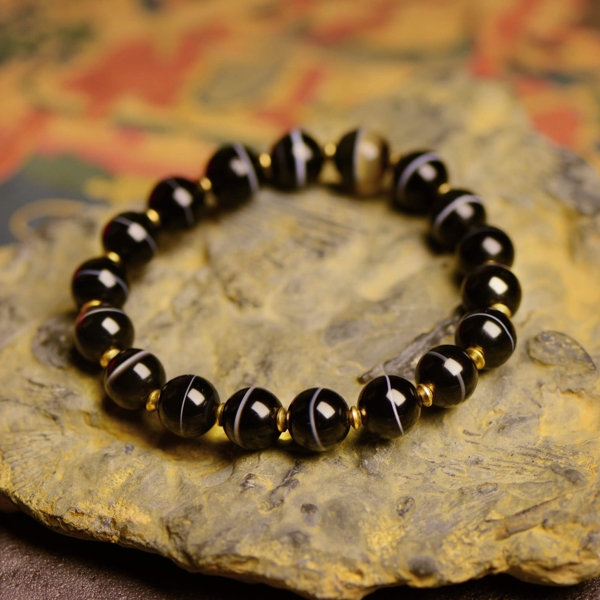 Rooted in Tibetan Buddhist tradition, each bracelet is handcrafted from natural agate, with no two ever alike. Agate carries a subtle magnetic field that aids meditation, calms the mind, and restores energy, serving as a guardian talisman that quiets the spirit and clears away distractions.