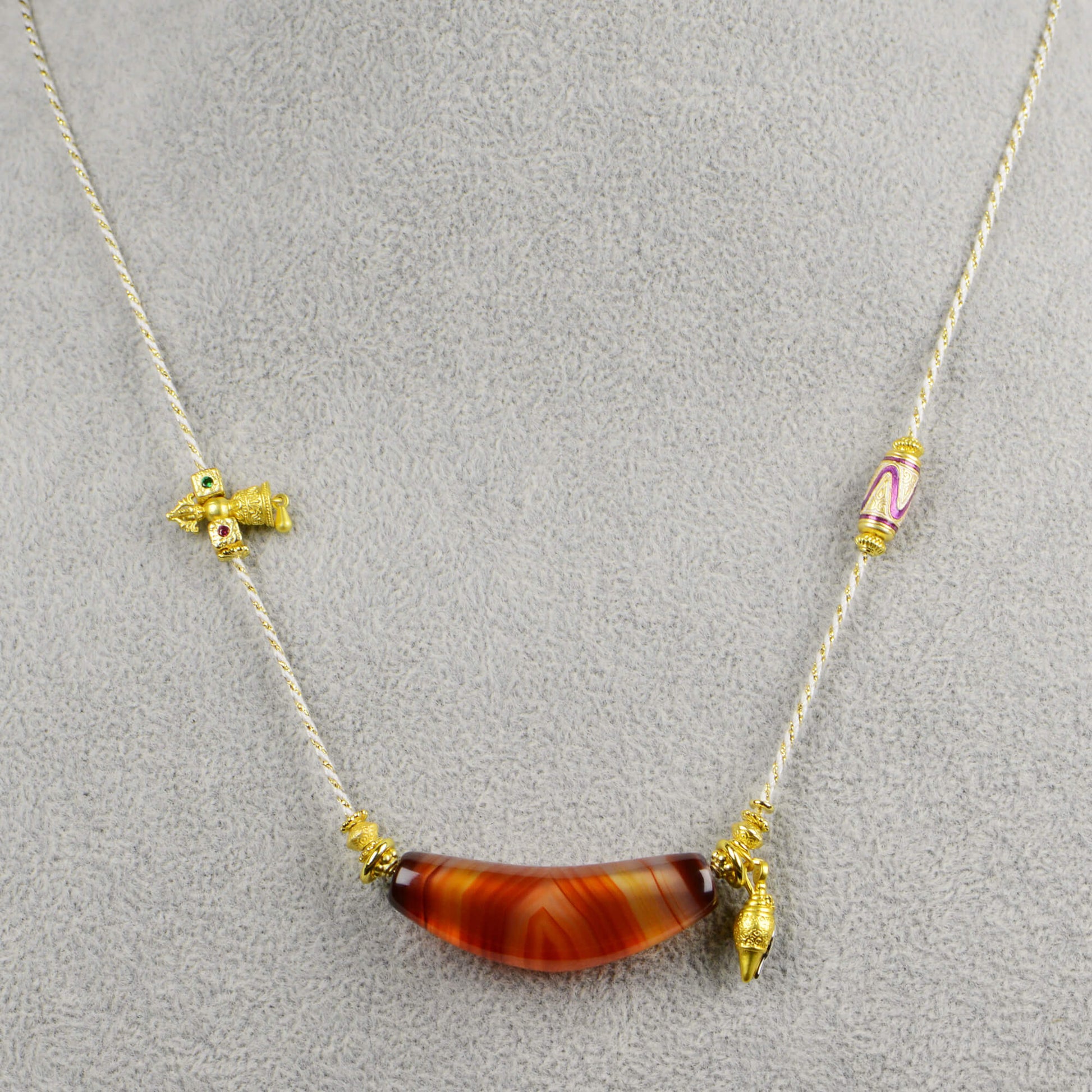 Vajra Bull Horn-Shaped Vein Agate Necklace