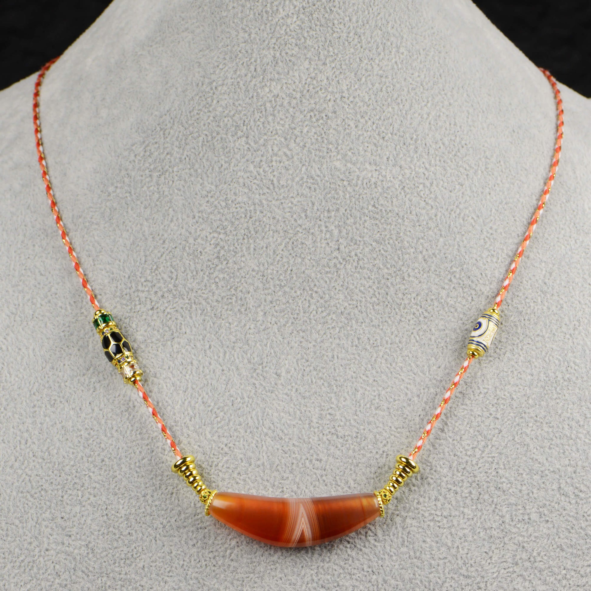 Vajra Bull Horn-Shaped Vein Agate Necklace