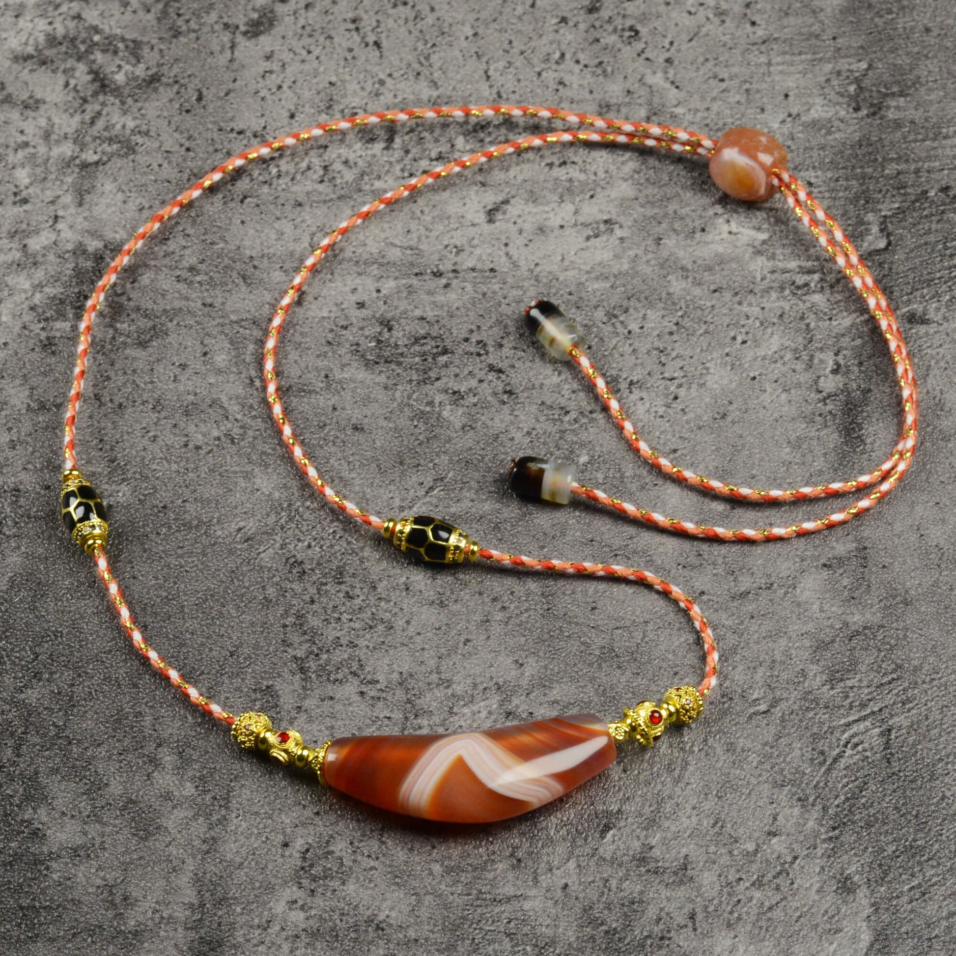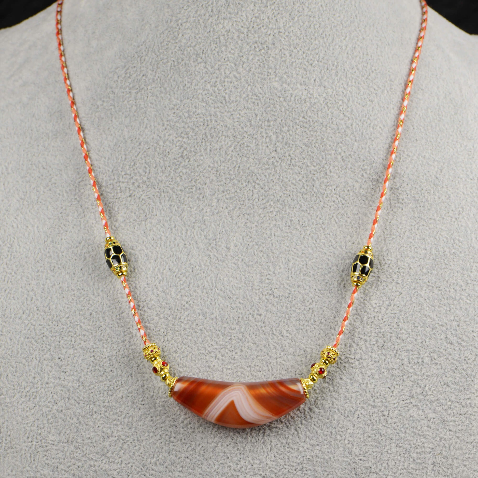 Vajra Bull Horn-Shaped Vein Agate Necklace