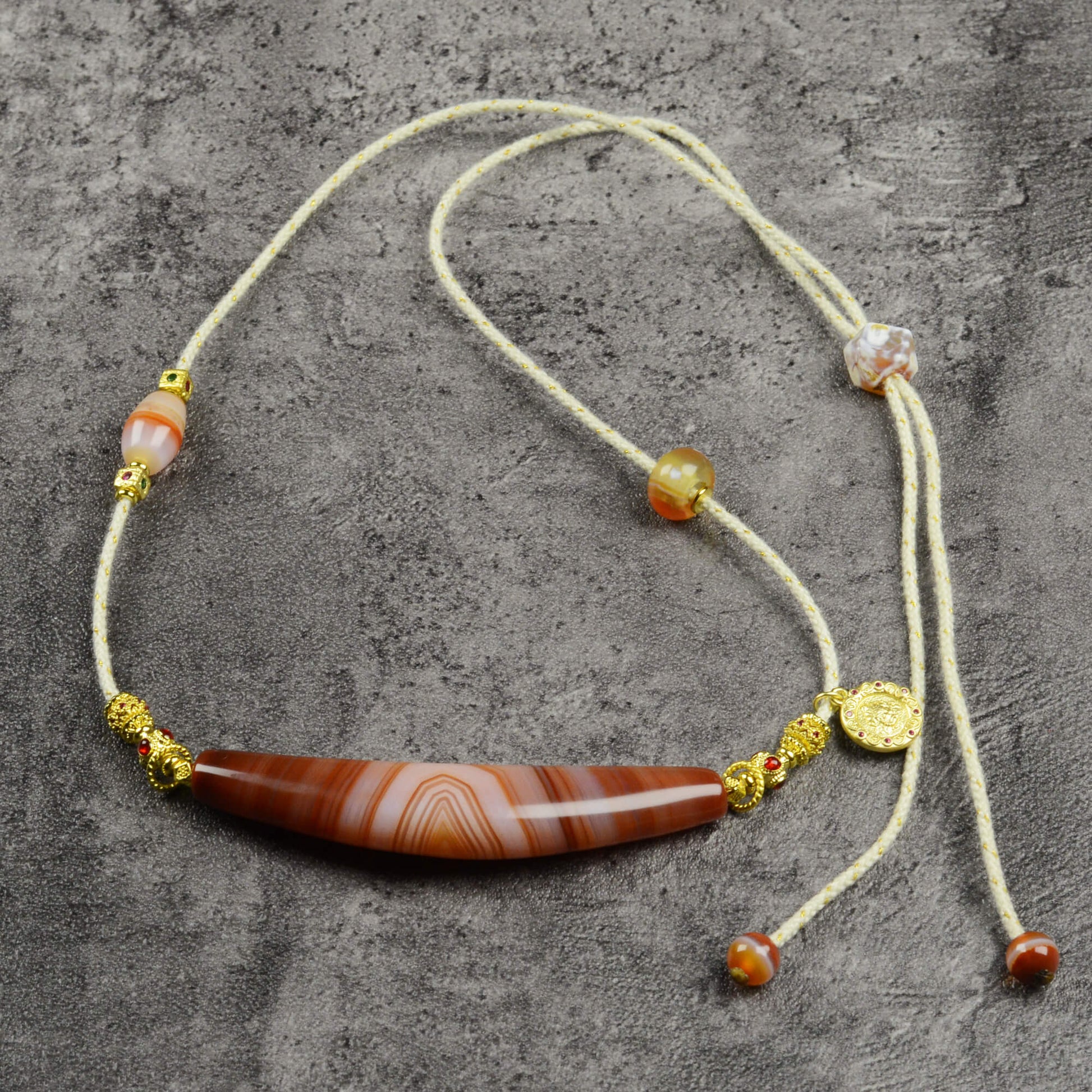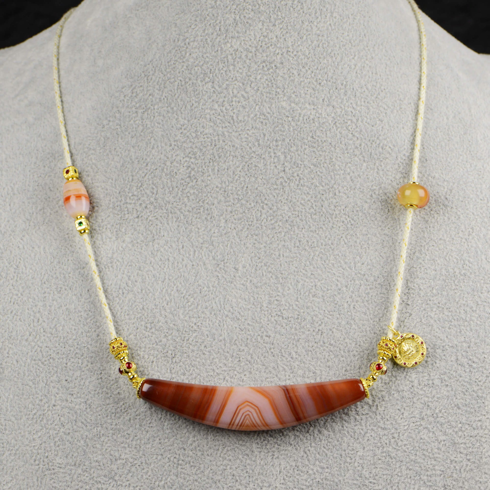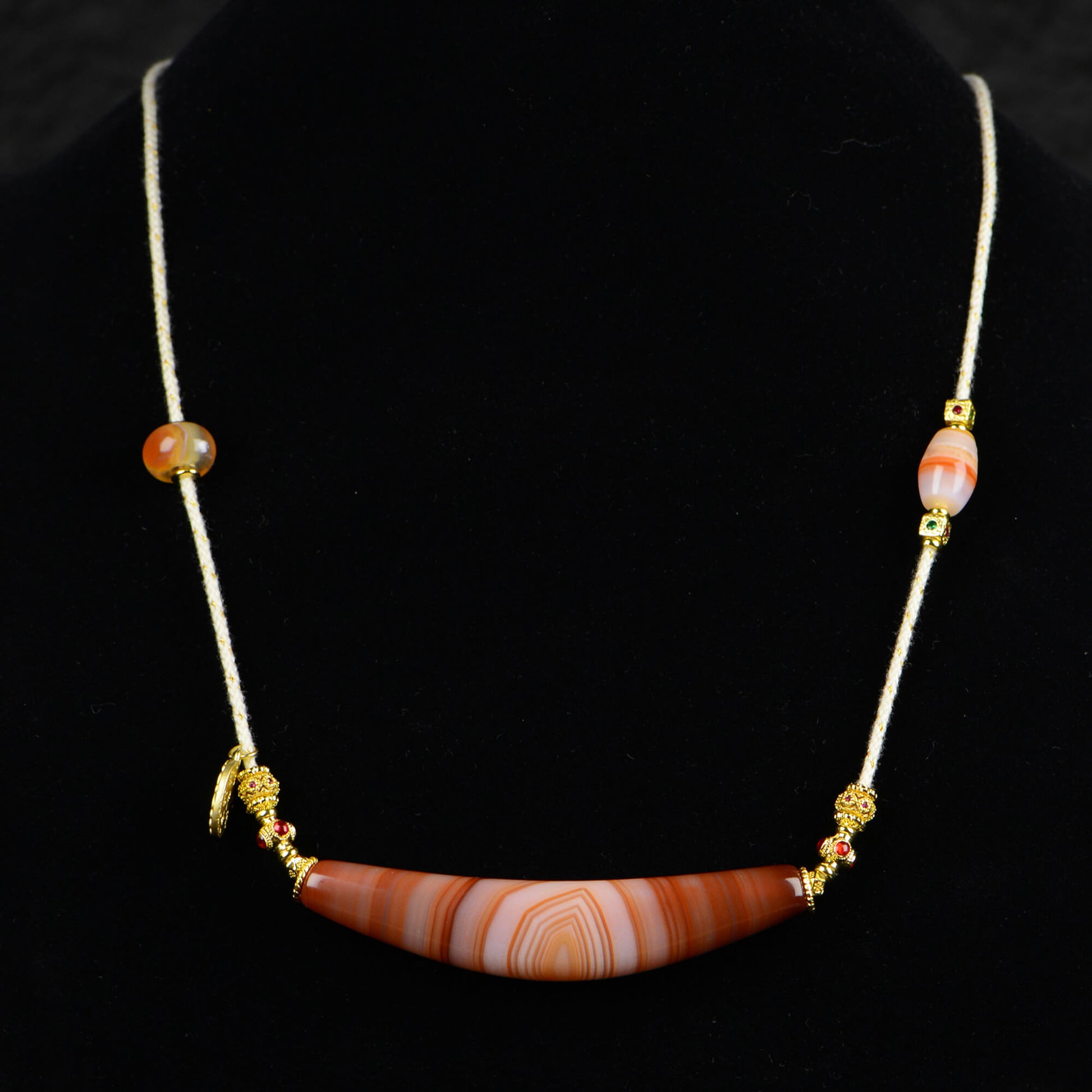 Vajra Bull Horn-Shaped Vein Agate Necklace