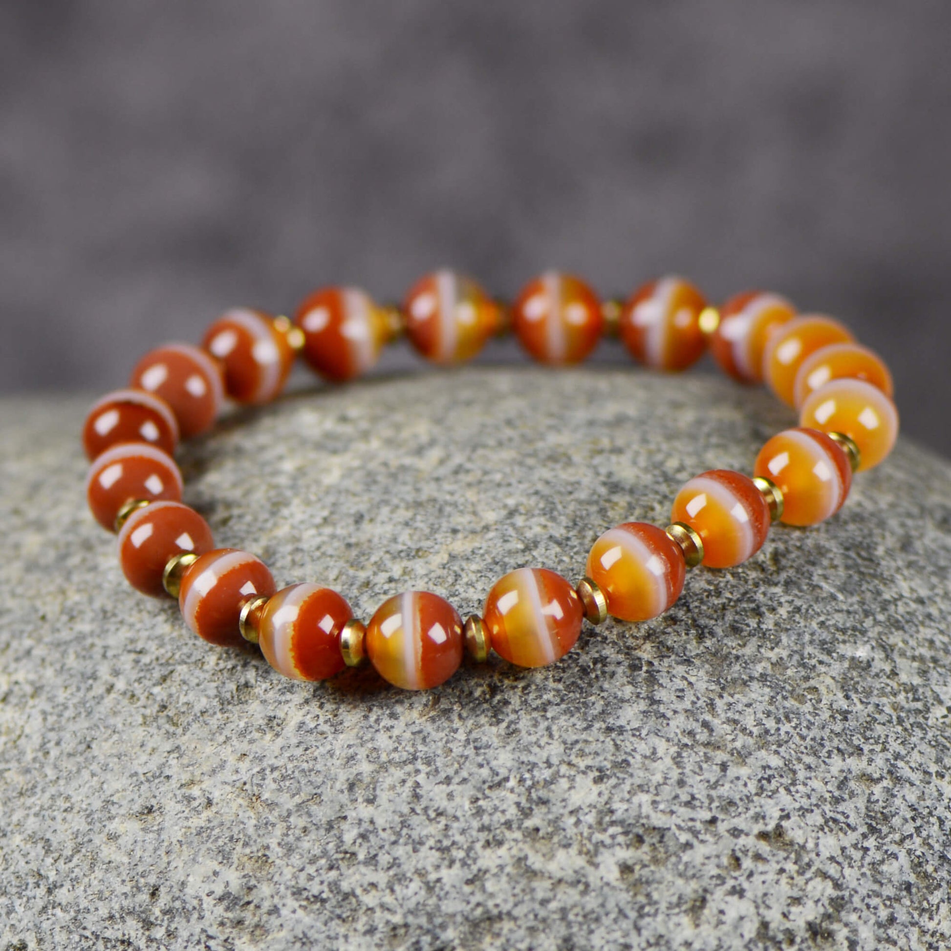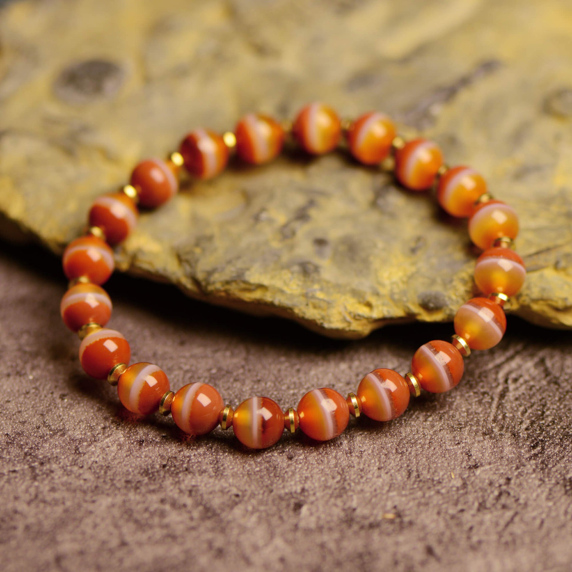 Rooted in Tibetan Buddhist tradition, each bracelet is handcrafted from natural agate, with no two ever alike. Agate carries a subtle magnetic field that aids meditation, calms the mind, and restores energy, serving as a guardian talisman that quiets the spirit and clears away distractions.