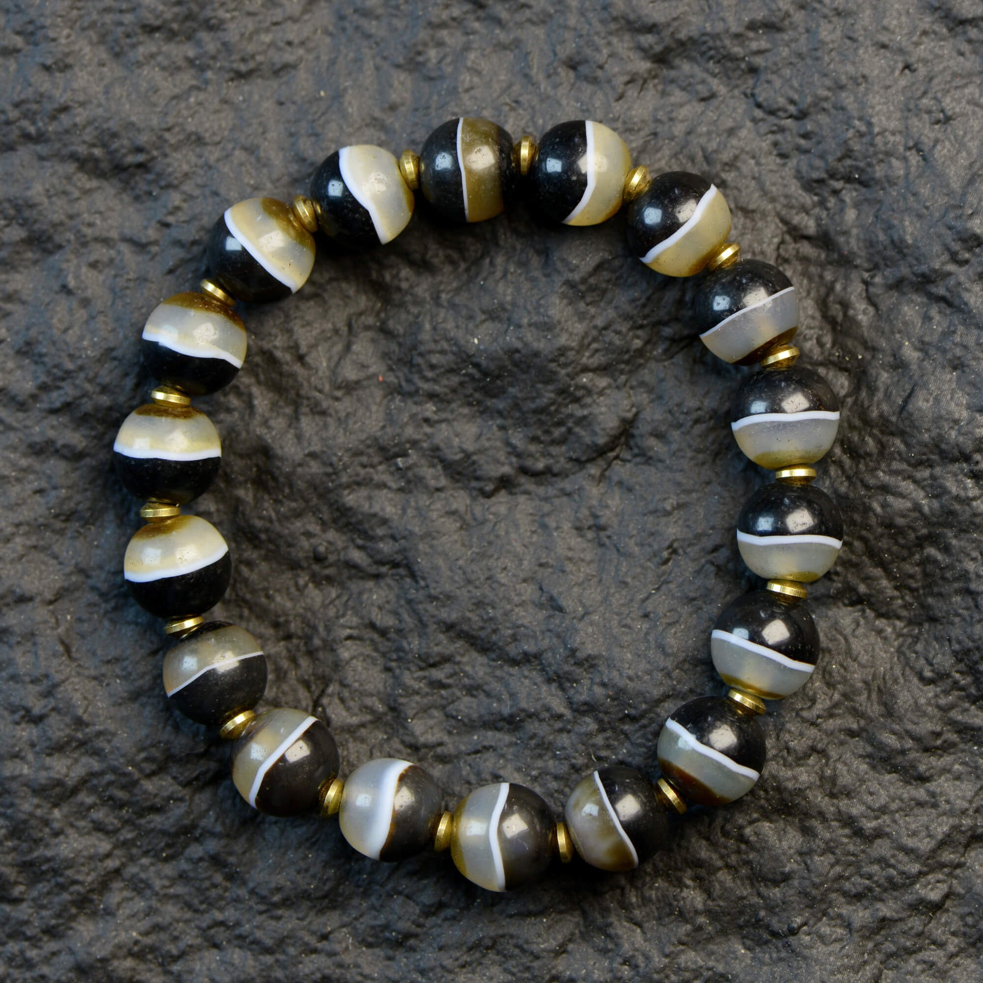 Rooted in Tibetan Buddhist tradition, each bracelet is handcrafted from natural agate, with no two ever alike. Agate carries a subtle magnetic field that aids meditation, calms the mind, and restores energy, serving as a guardian talisman that quiets the spirit and clears away distractions.