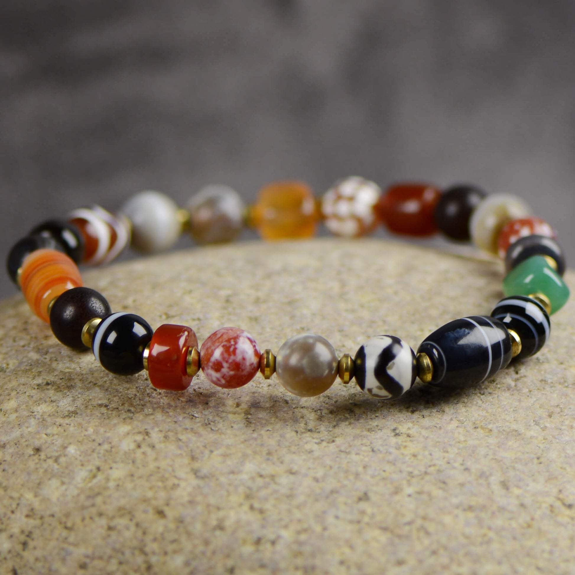 Rooted in Tibetan Buddhist tradition, each bracelet is handcrafted from natural agate, with no two ever alike. Agate carries a subtle magnetic field that aids meditation, calms the mind, and restores energy, serving as a guardian talisman that quiets the spirit and clears away distractions.