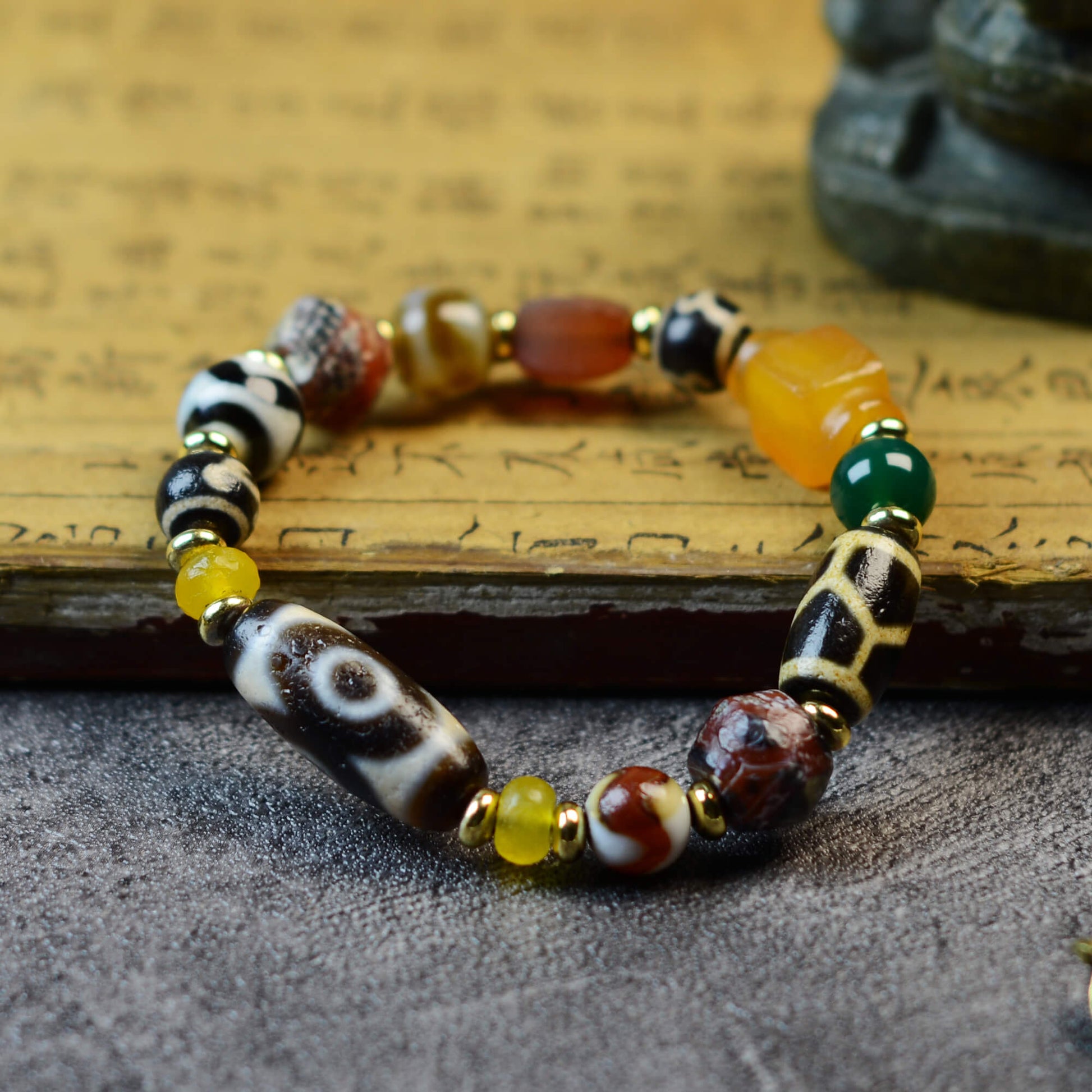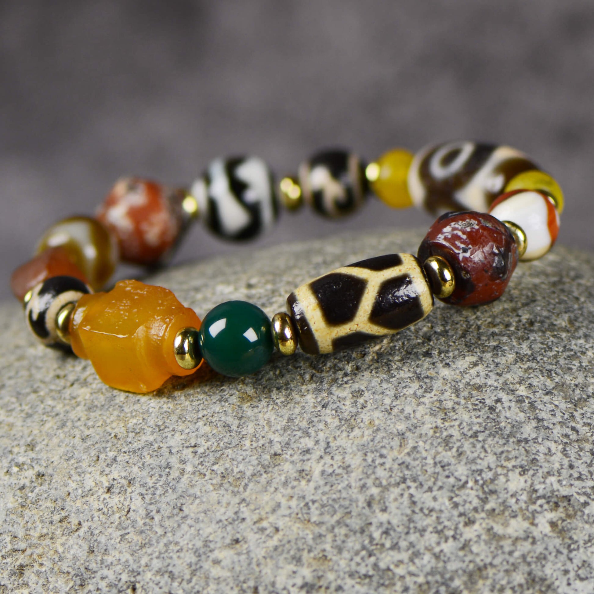 Rooted in Tibetan Buddhist tradition, each bracelet is handcrafted from natural agate, with no two ever alike. Agate carries a subtle magnetic field that aids meditation, calms the mind, and restores energy, serving as a guardian talisman that quiets the spirit and clears away distractions.