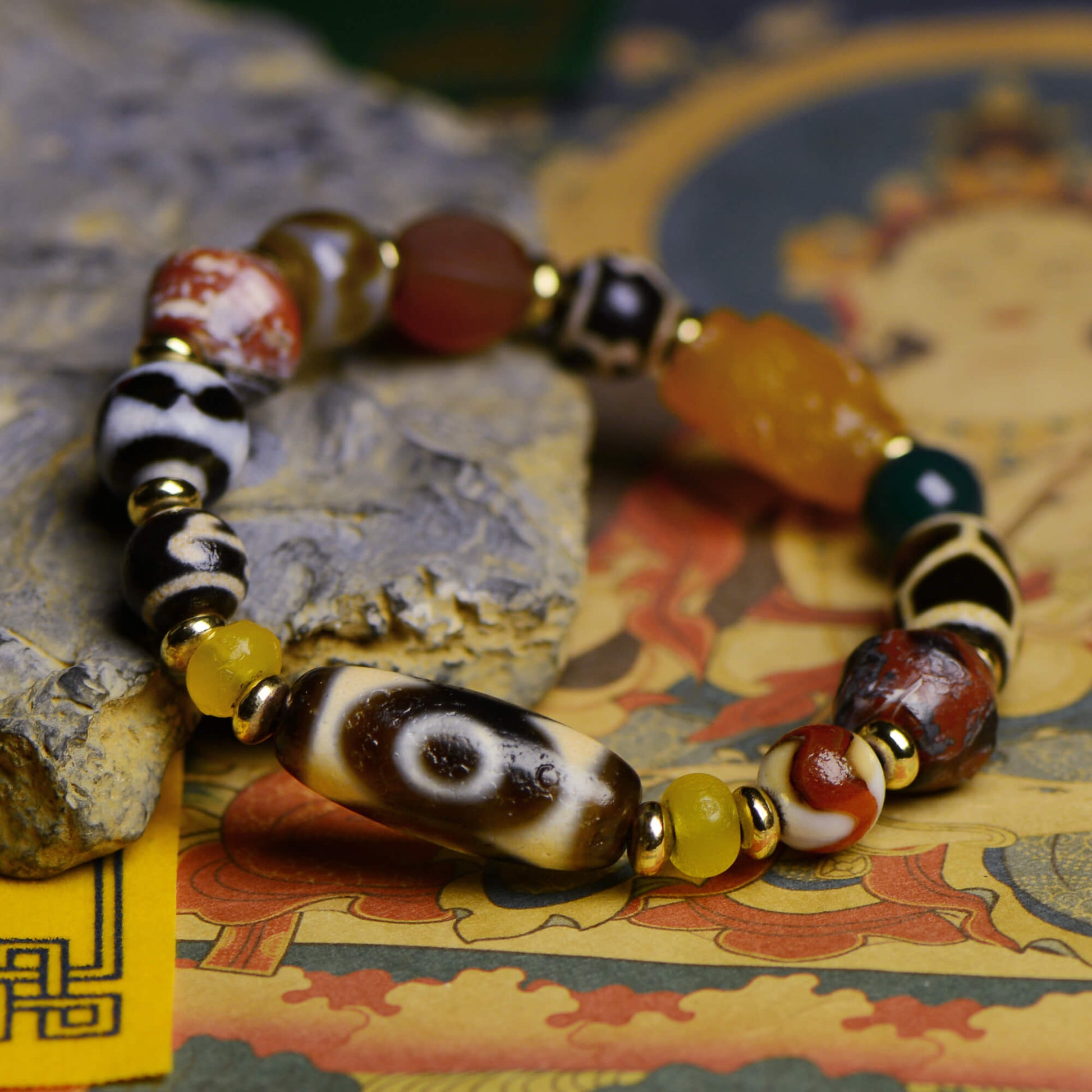 Vajra Lotus Three-Eyed Dzi Bracelet