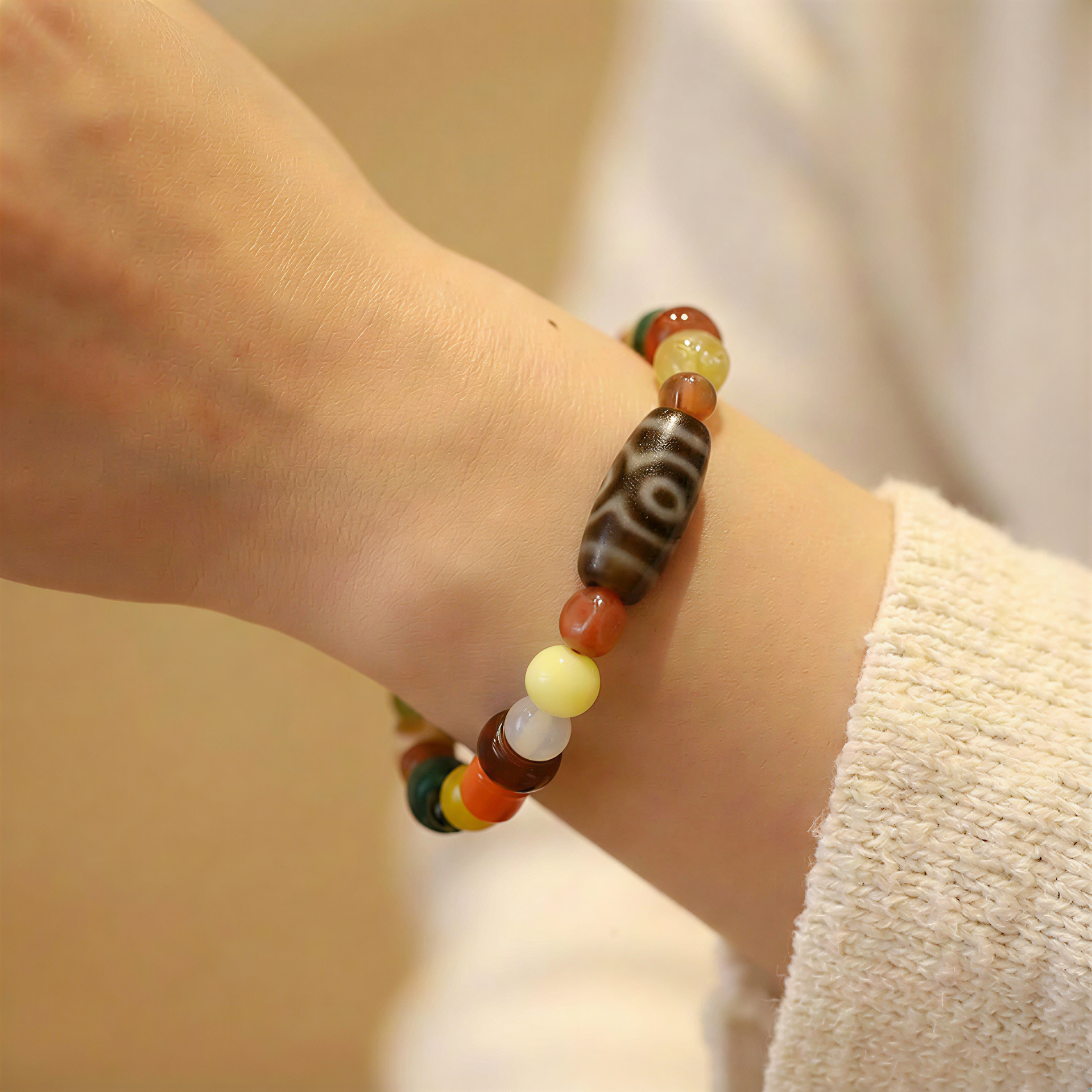 Vajra Lotus Three-Eyed Dzi Bracelet