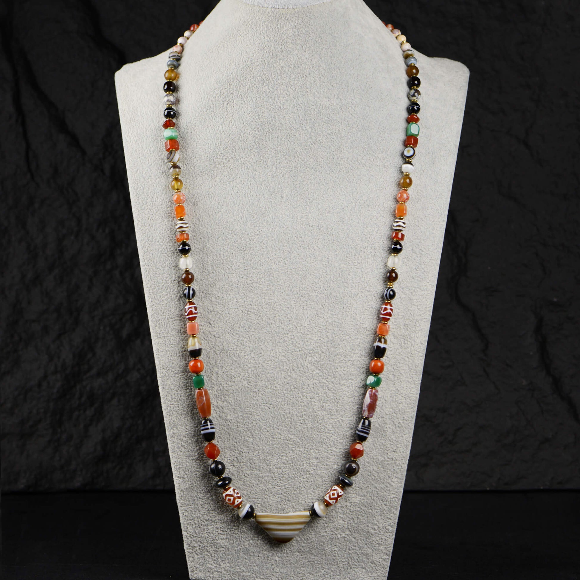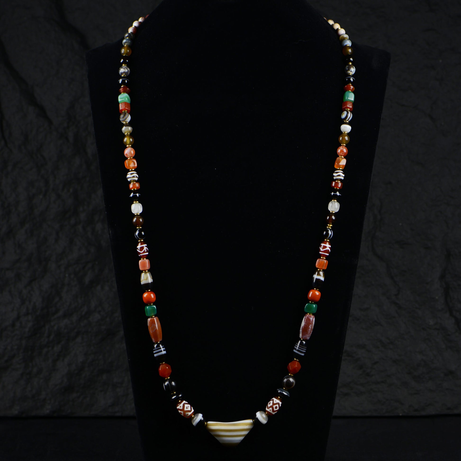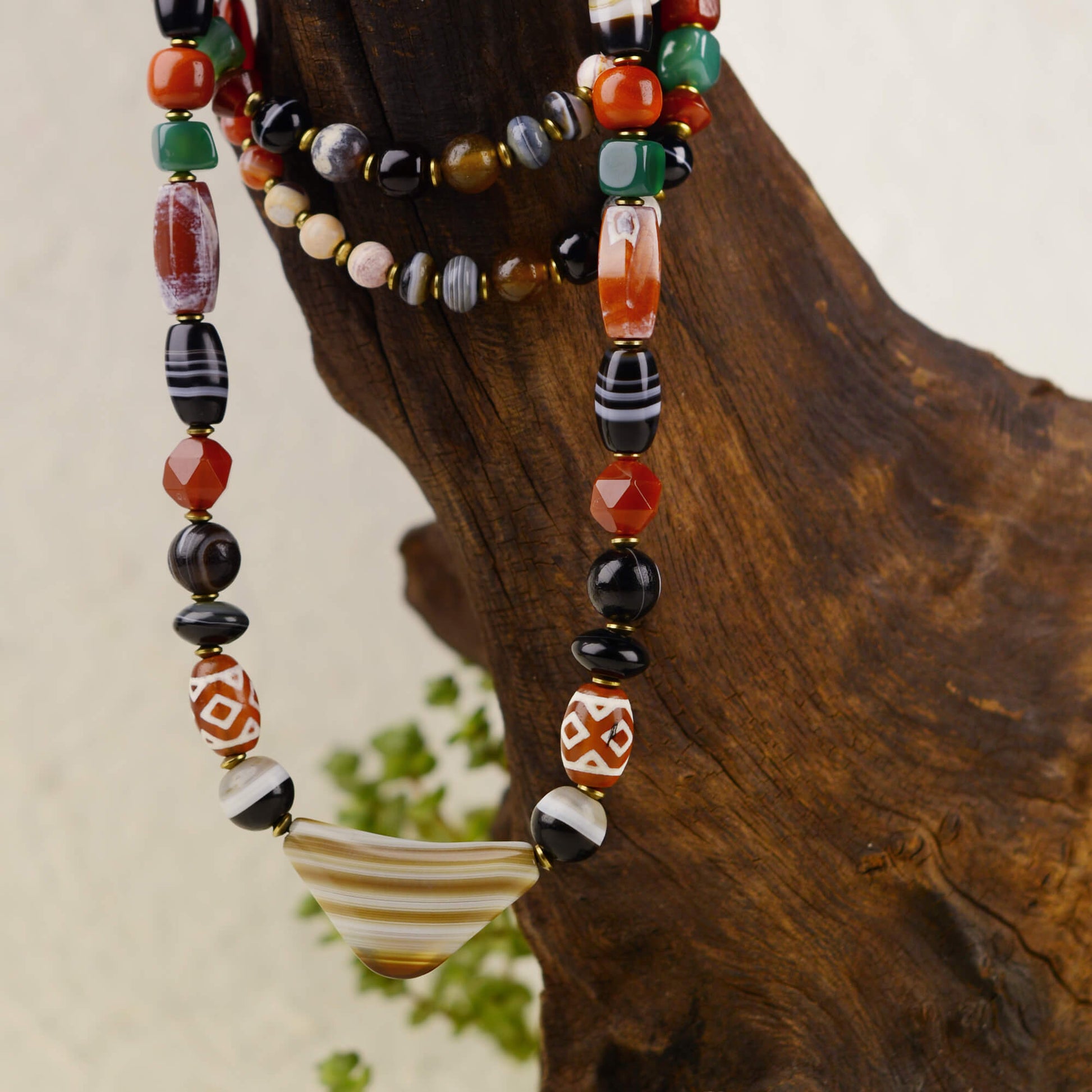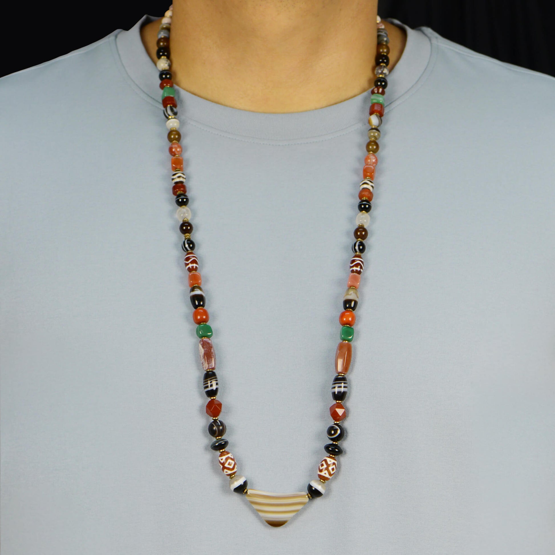 This necklace is made with multicolored agate gemstones, featuring a distinctive Tibetan style and strong individuality.