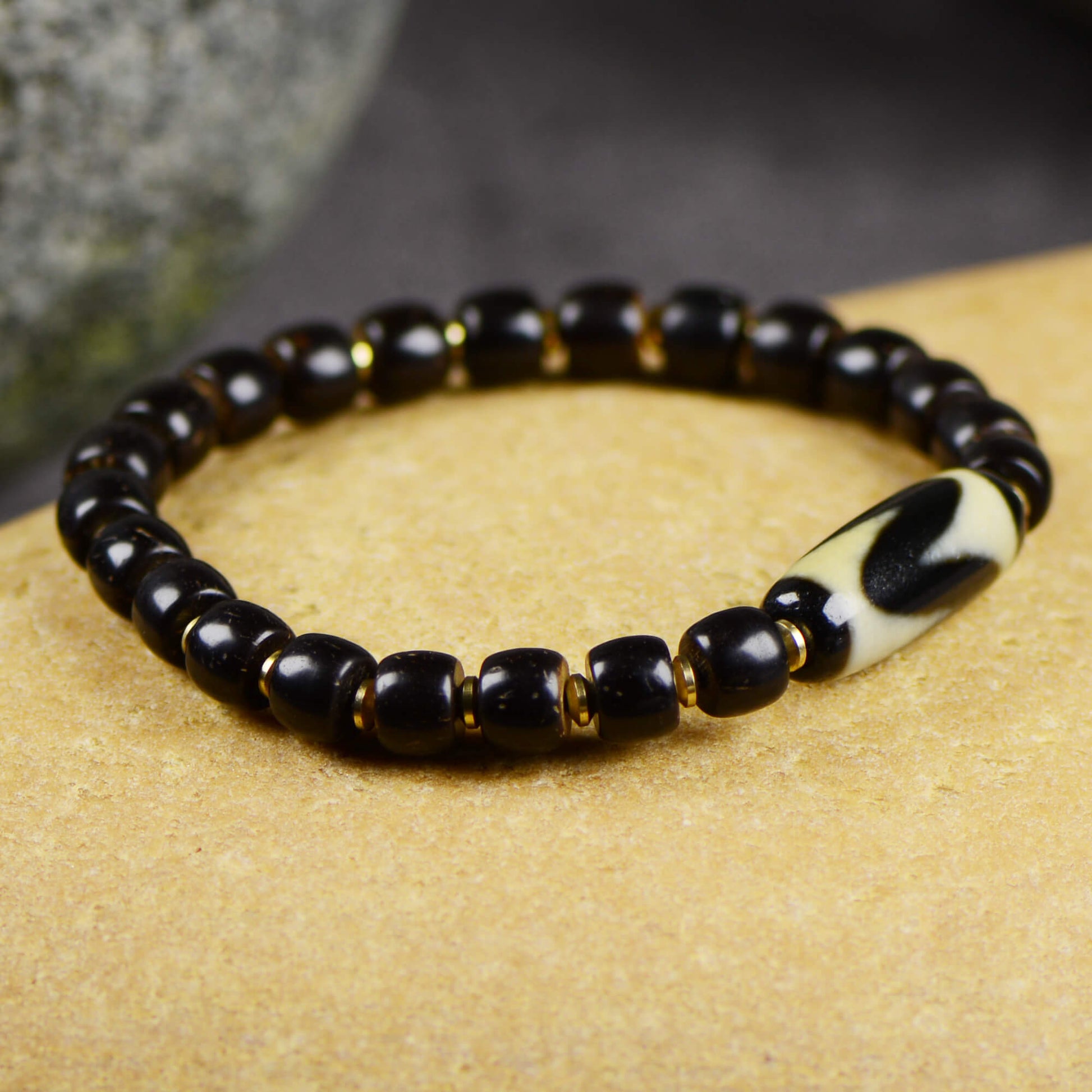 Rooted in Tibetan Buddhist tradition, each bracelet is handcrafted from natural agate, with no two ever alike. Agate carries a subtle magnetic field that aids meditation, calms the mind, and restores energy, serving as a guardian talisman that quiets the spirit and clears away distractions.