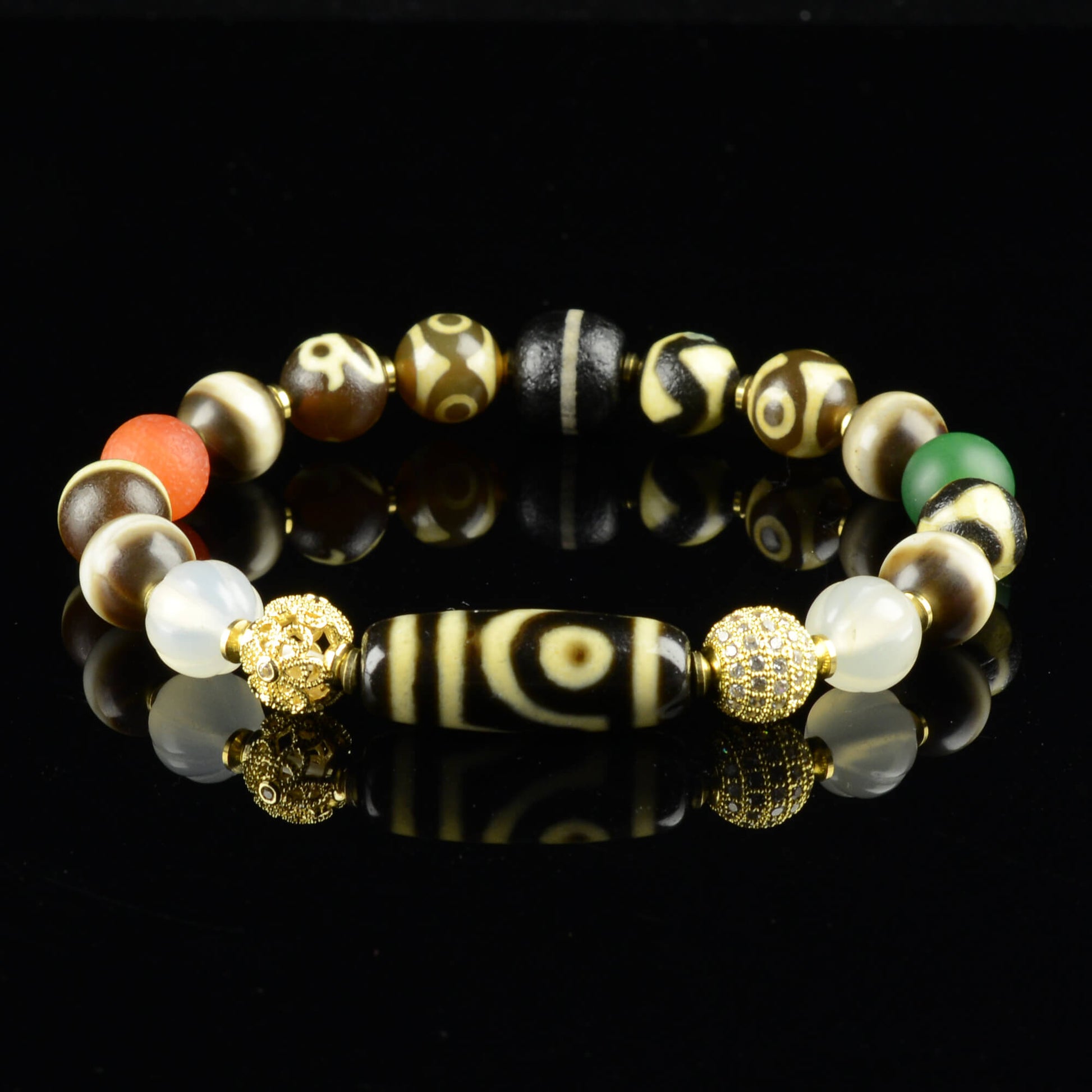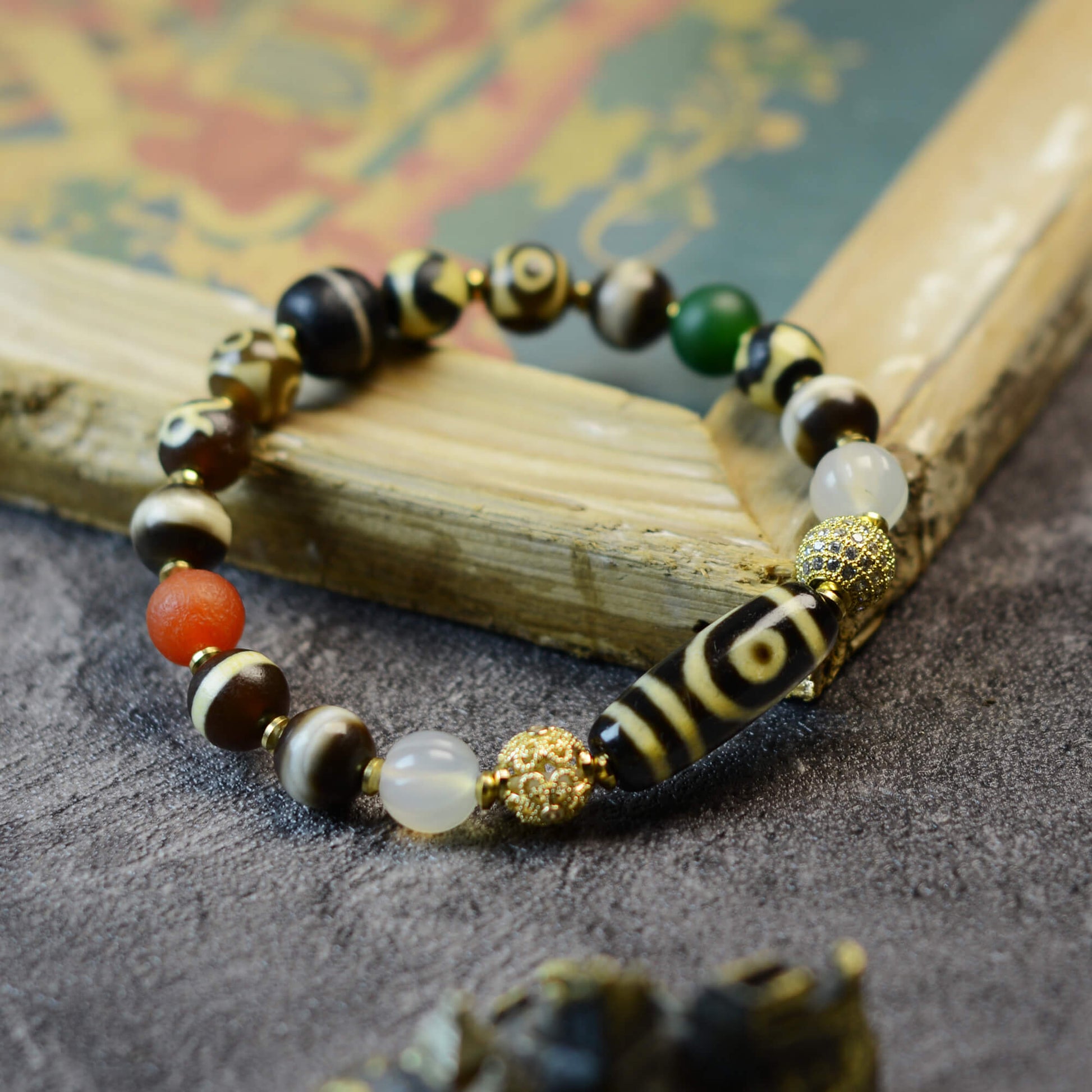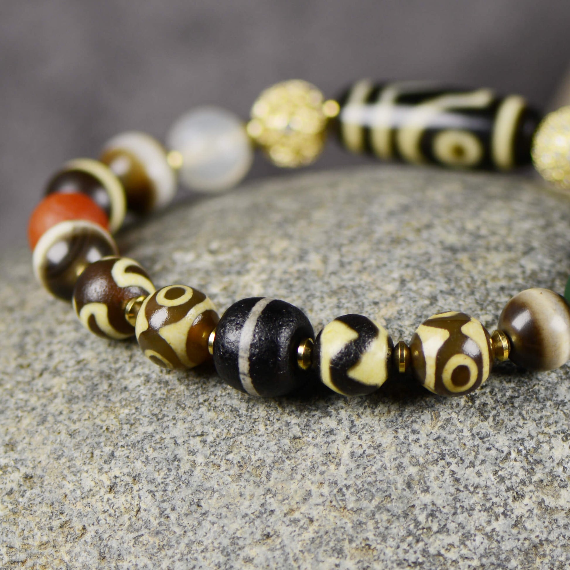 | Material | Two-Eyed Dzi Bead & Multicolored Agate Beads |