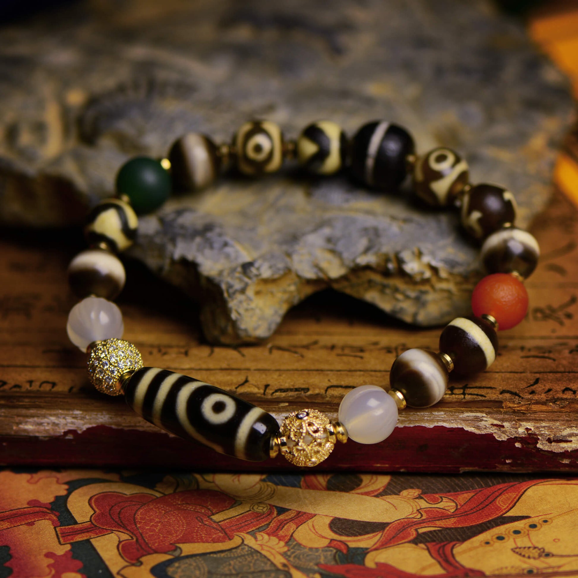 Vajra Two-Eyed Dzi Bead Bracelet — Harmony in Duality
