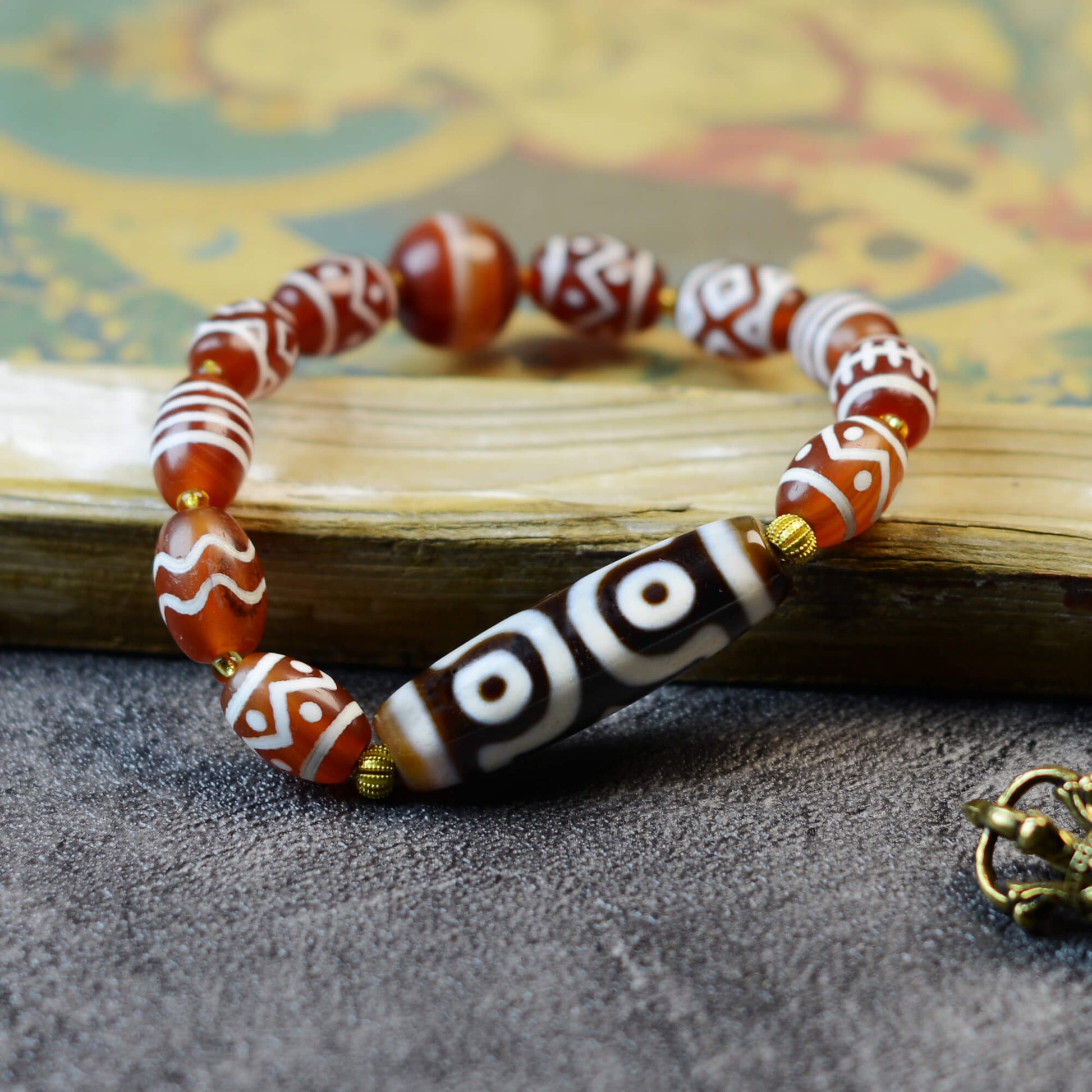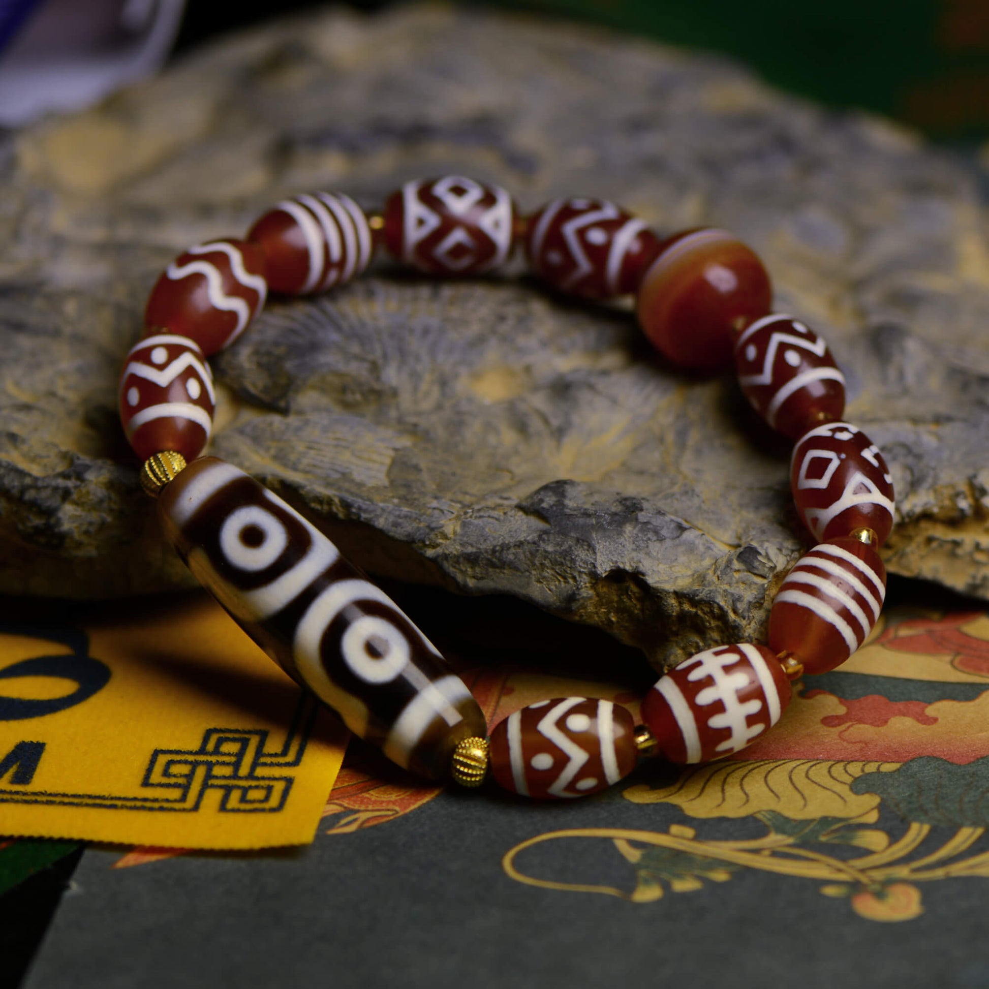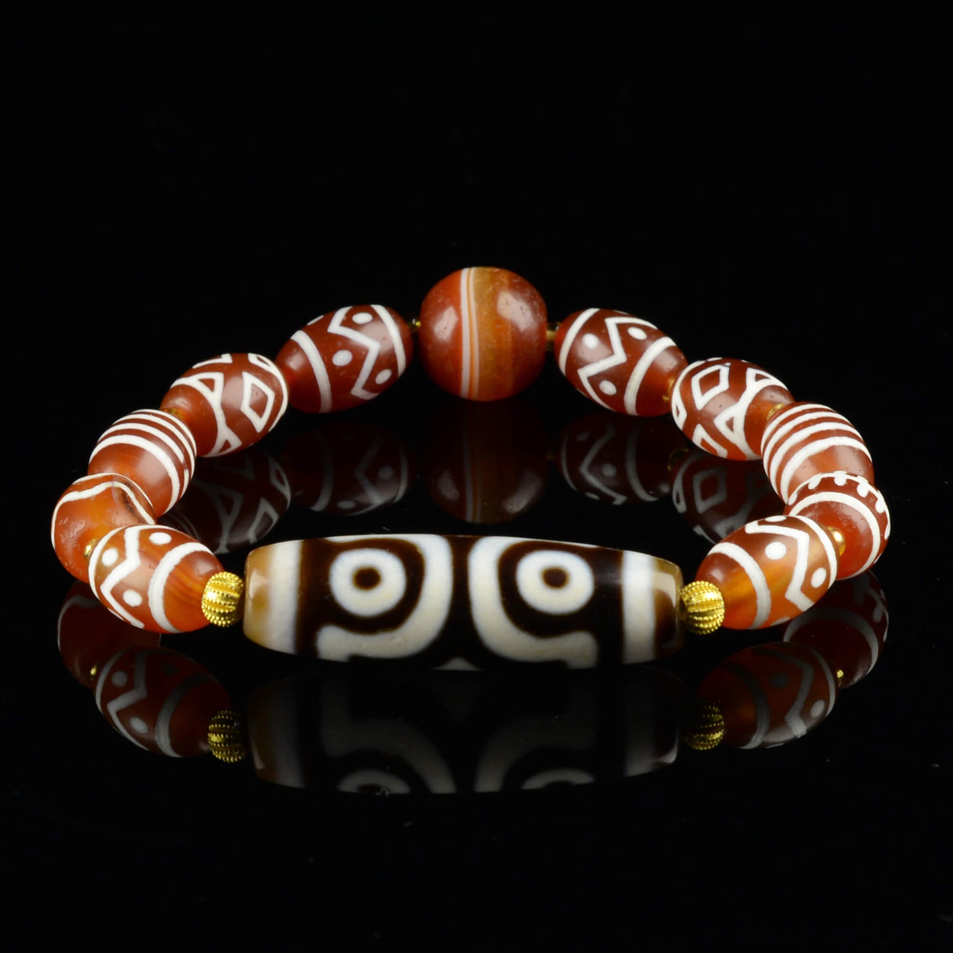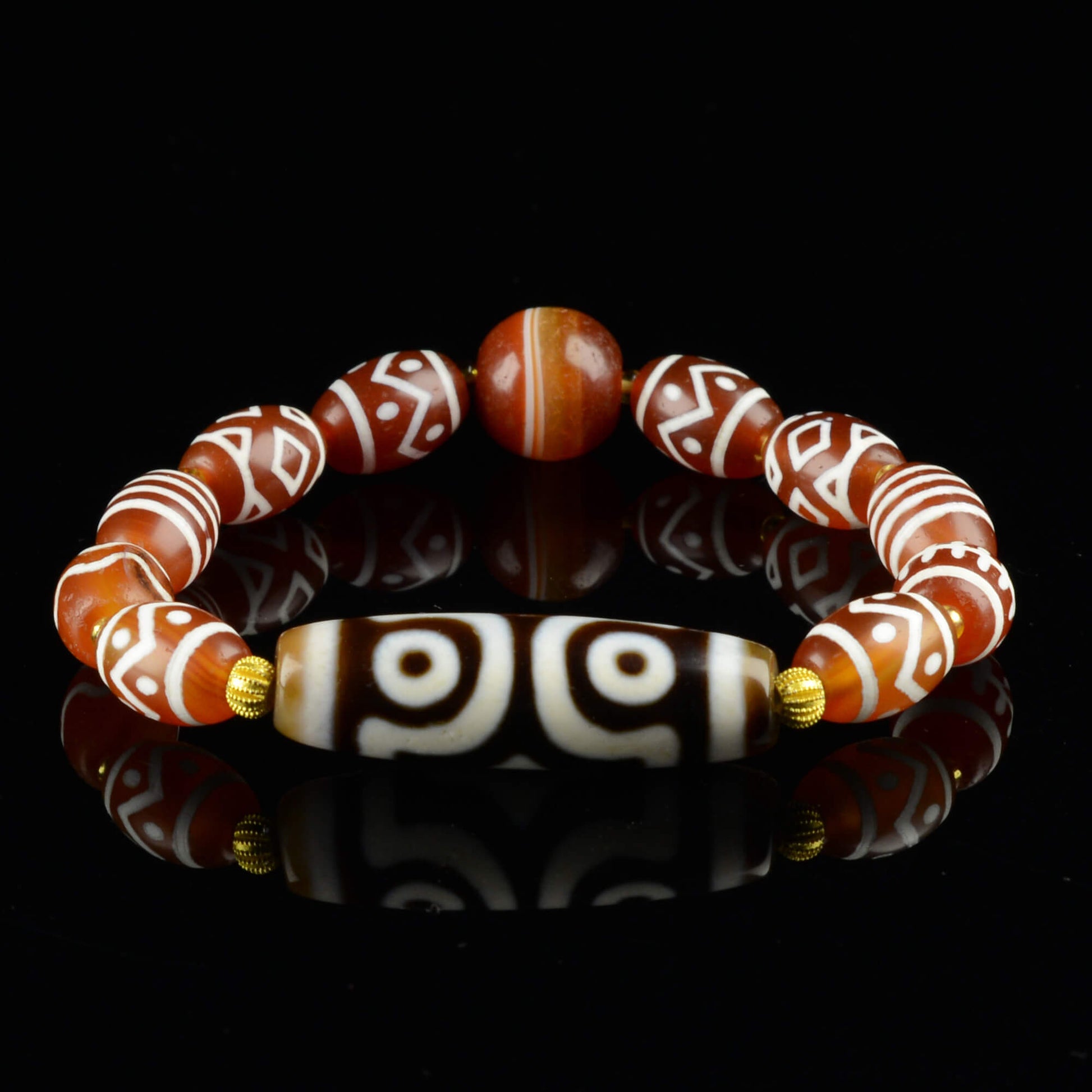 Vajra Three-Eyed Dzi Bracelet with Protective Canopy Pattern